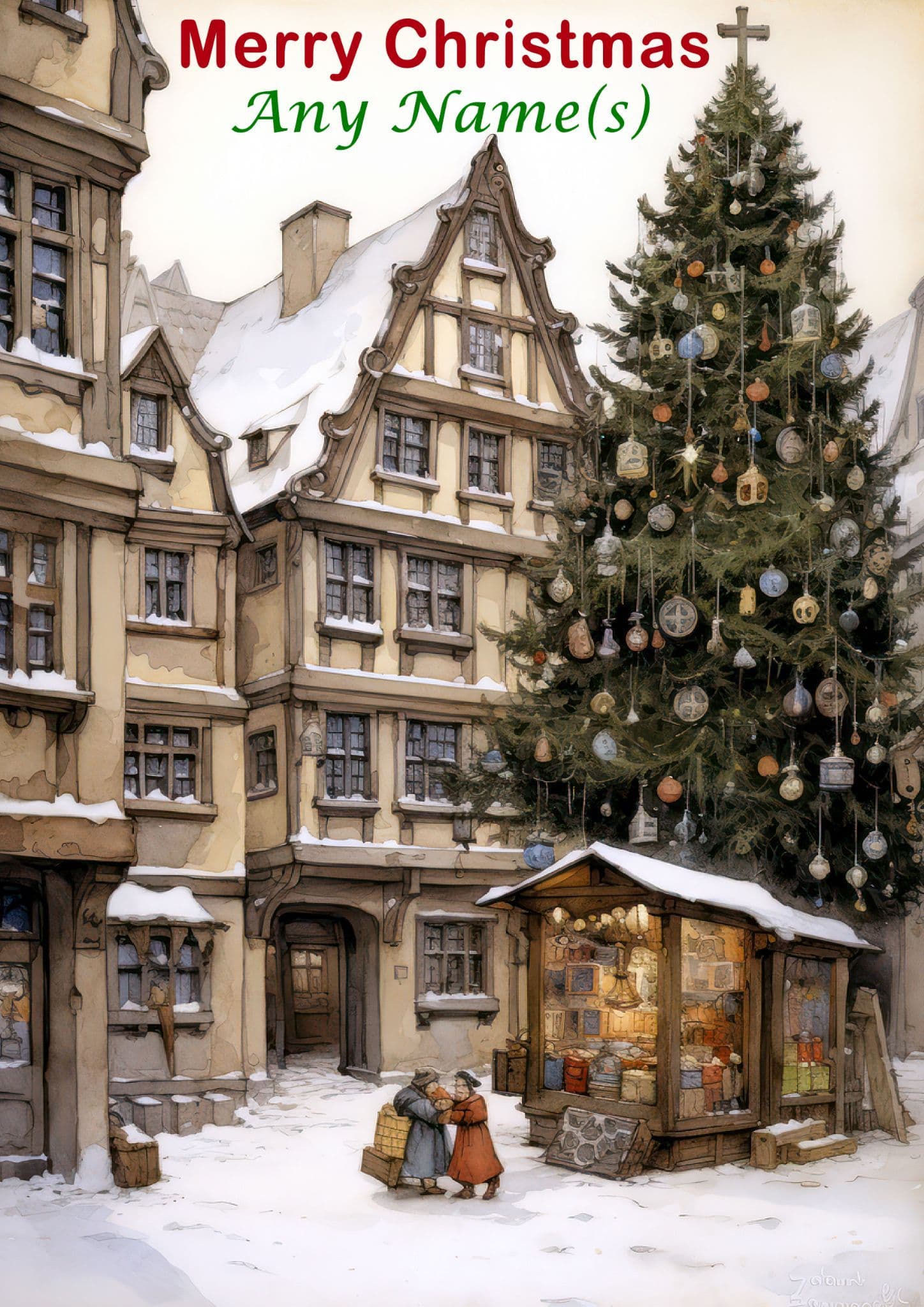 The message on the front of this Christmas card says "Merry Christmas" "Any Name" and the inside of the card says "Merry Christmas and a Happy New Year". You must replace the words "Any Name" with a Name of your choice in the box provided above.