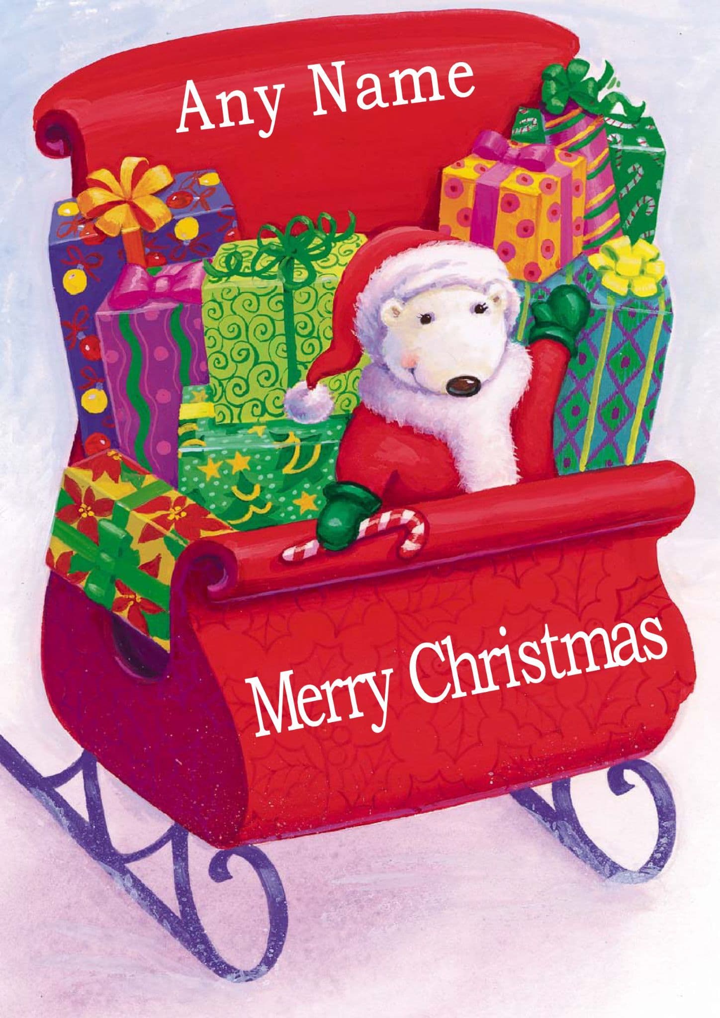 The message on the front of this Christmas card says "Merry Christmas" "Any Name" and the inside of the card says "Merry Christmas". You must replace the words "Any Name" with a Name of your choice in the box provided above.