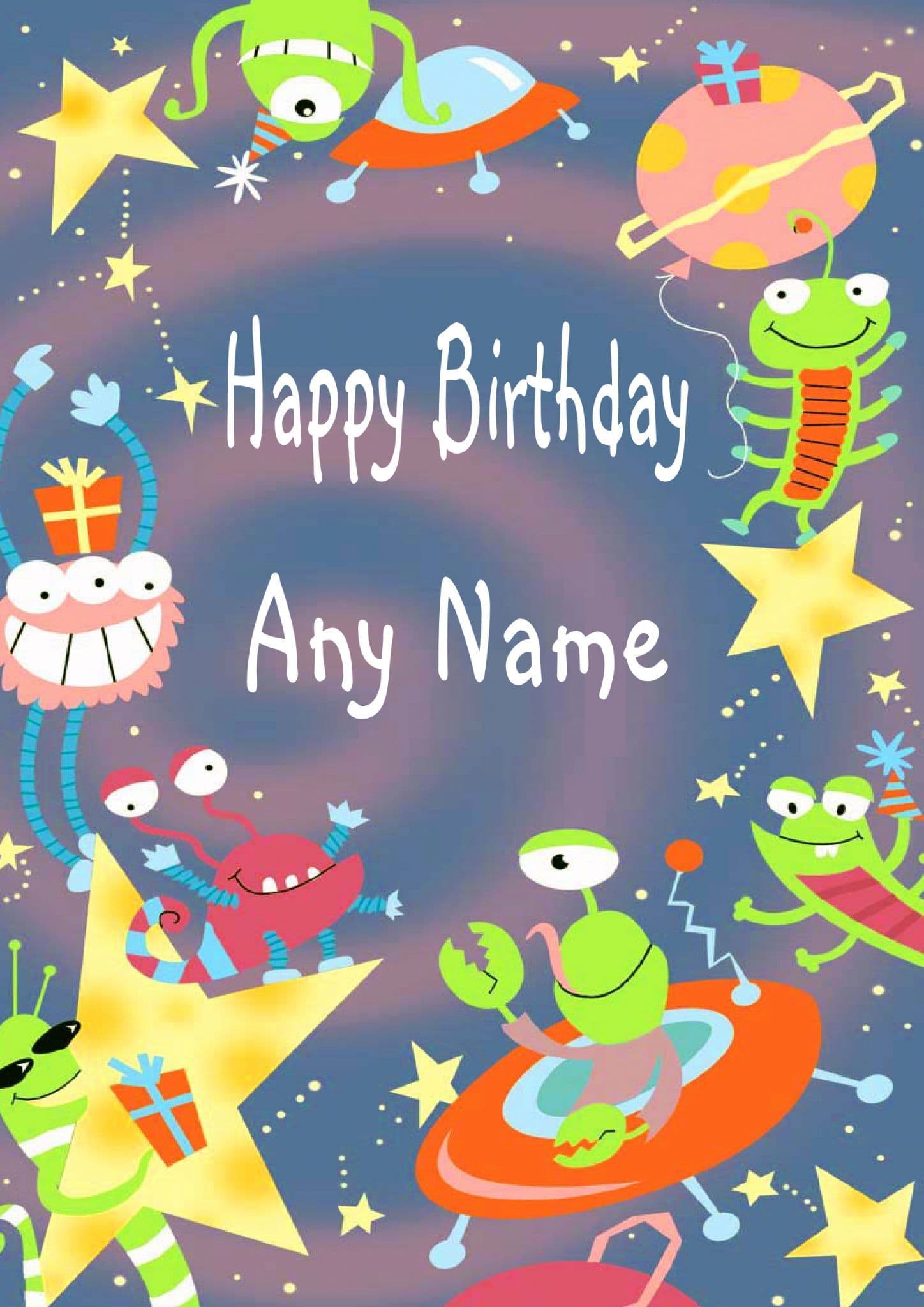 The message on the front of the card says "Happy Birthday" and the inside says "Happy Birthday". You can enter a Name of your choice in the box provided so that the card reads " Happy Birthday 'Name' ".
