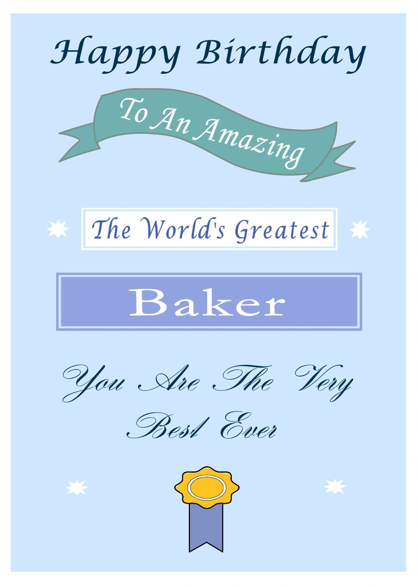 This "Occupation" birthday card has the text "Happy Birthday" "To An Amazing, The World's Greatest, Baker" on the front of the card and the message on the inside of the card says "Happy Birthday". The front of the card also says "You Are The Very Best Ever"