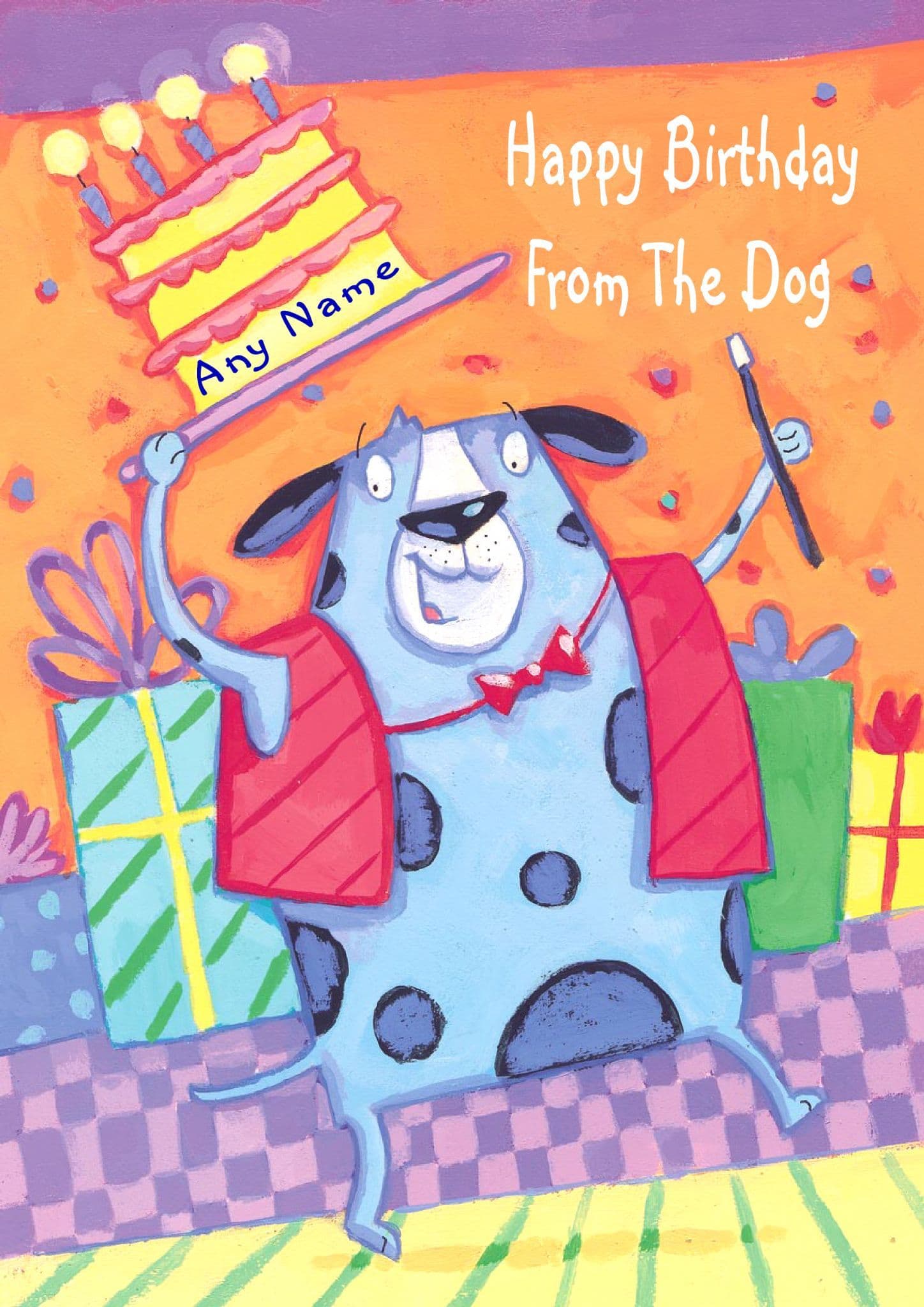 The message on the front of the card says "Happy Birthday" "From The Dog" and the inside of the card says "Happy Birthday"