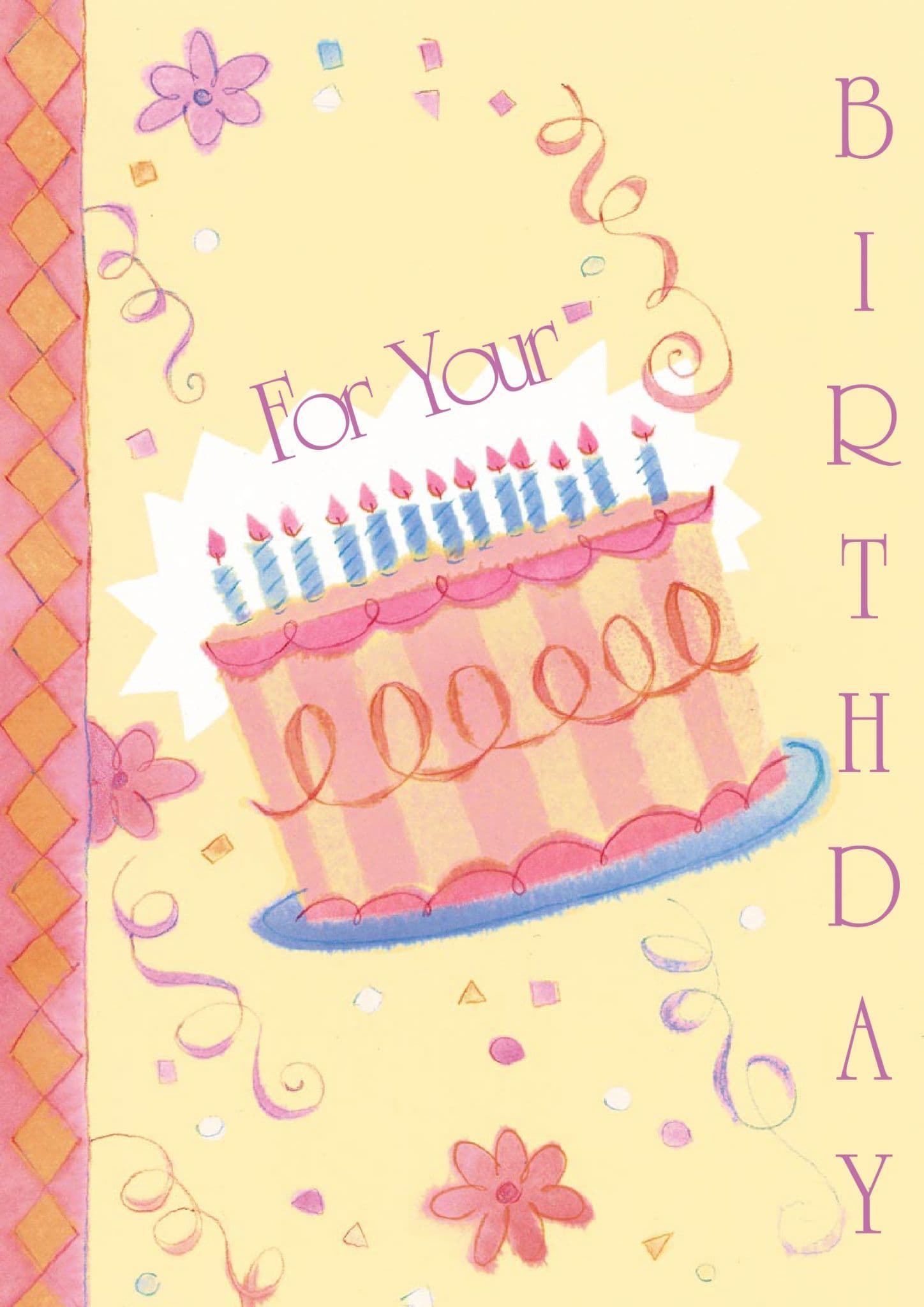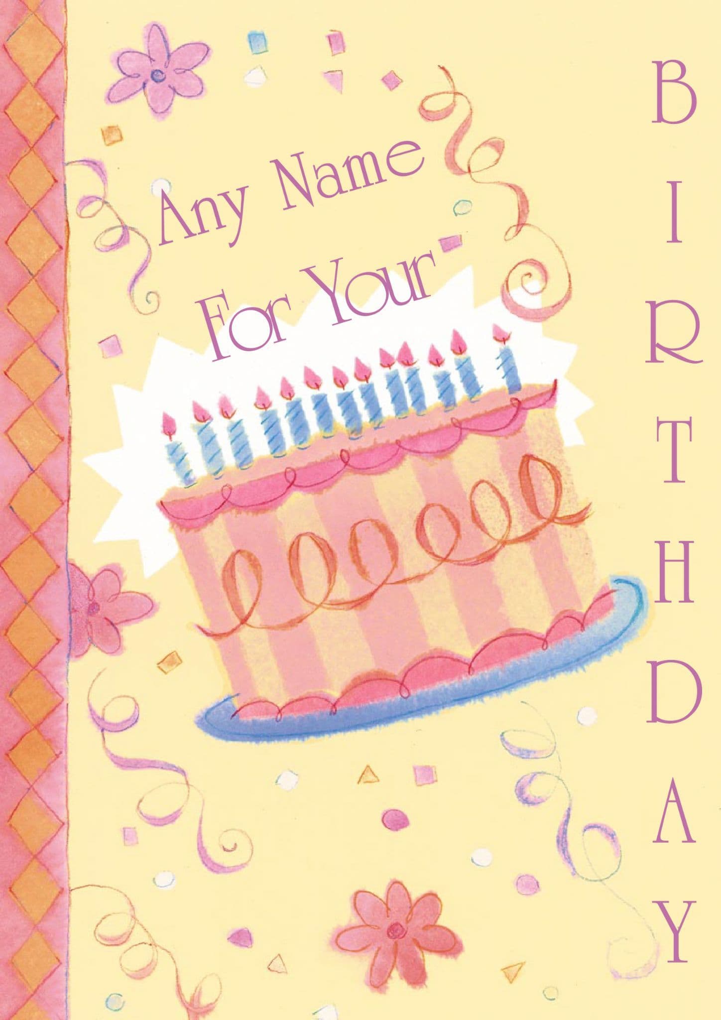 The message on the front of the card says "For Your Birthday" and the inside says "Happy Birthday".  You can enter a Name of your choice in the box provided so that the card reads " 'Name' For Your Birthday ".