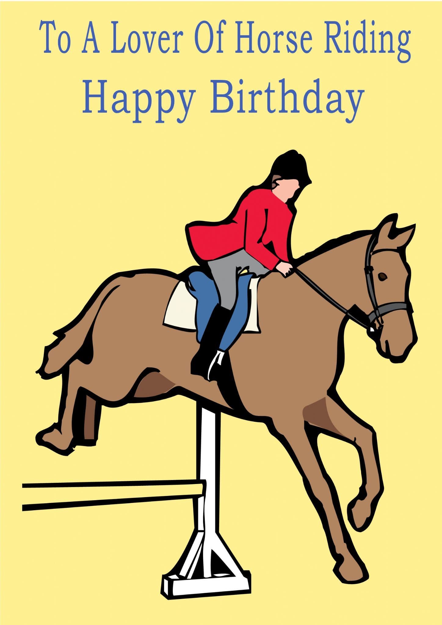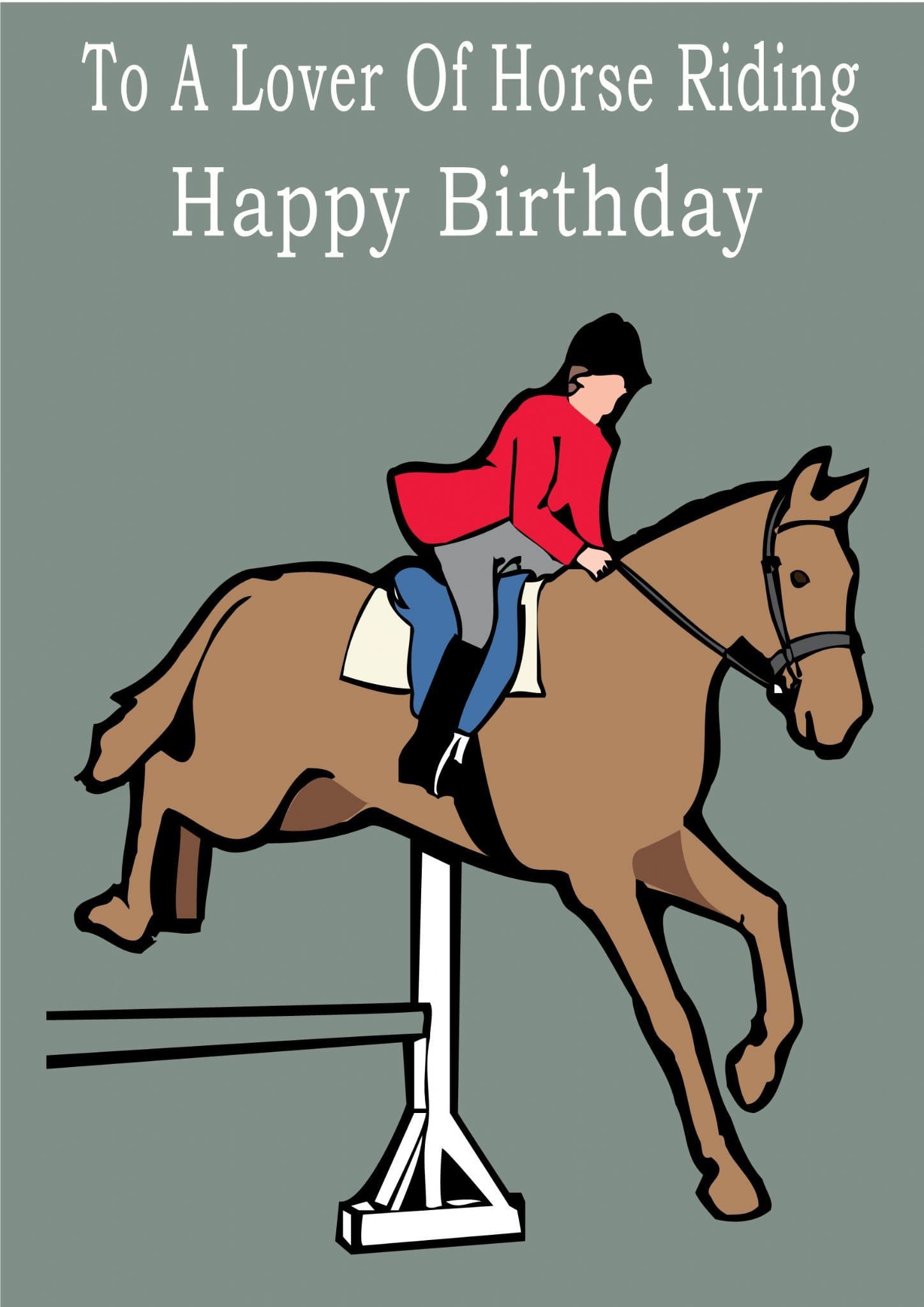This Equestrian sport card has the text "To A Lover Of Horse Riding", "Happy Birthday" on the front. The birthday card can also be personalised with a name by entering their name in the box provided above.