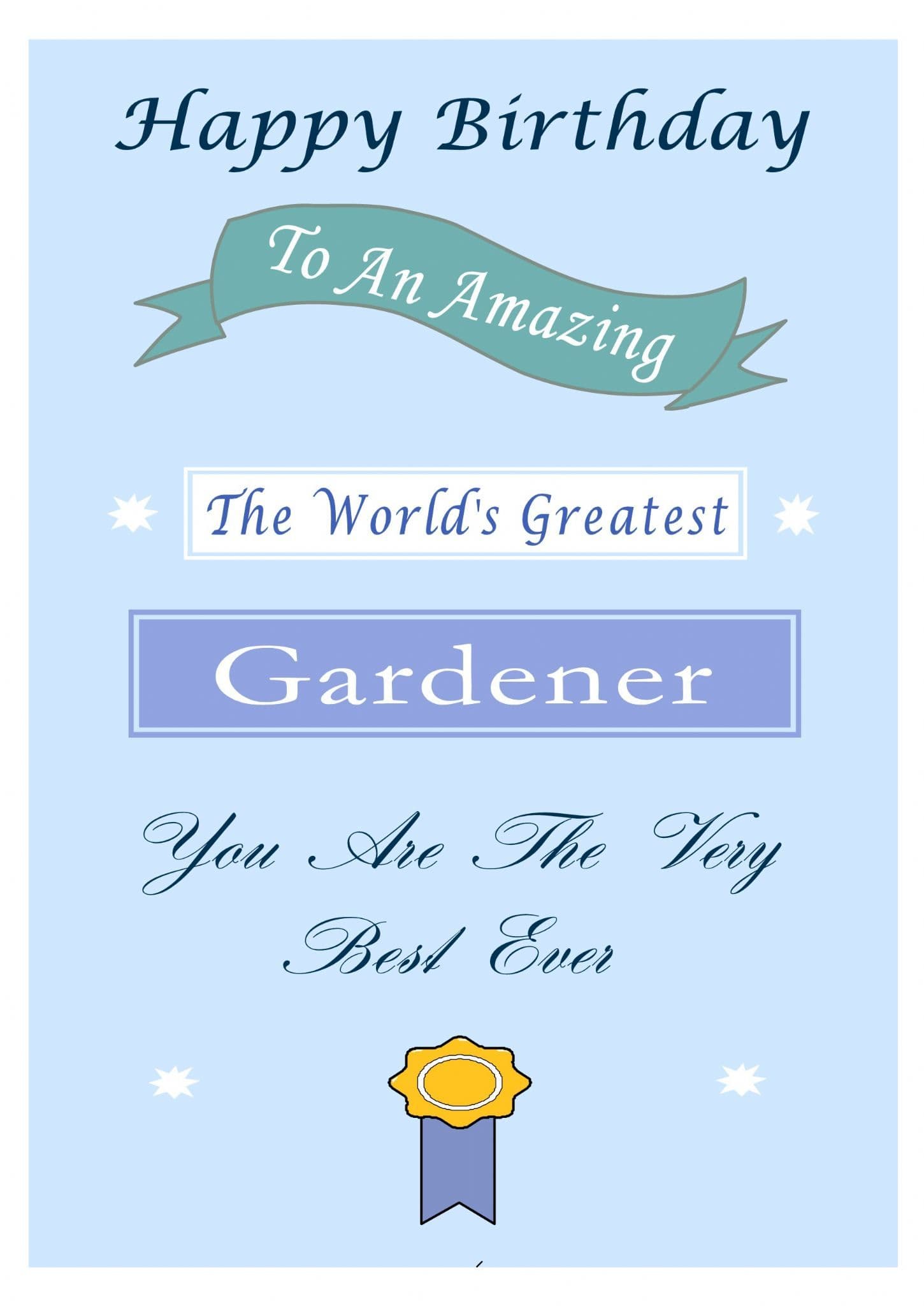 This "Occupation" birthday card has the text "Happy Birthday" "To An Amazing,The World's Greatest, Gardener" on the front of the card and the message on the inside of the card says "Happy Birthday". The front of the card also says "You Are The Very Best Ever"