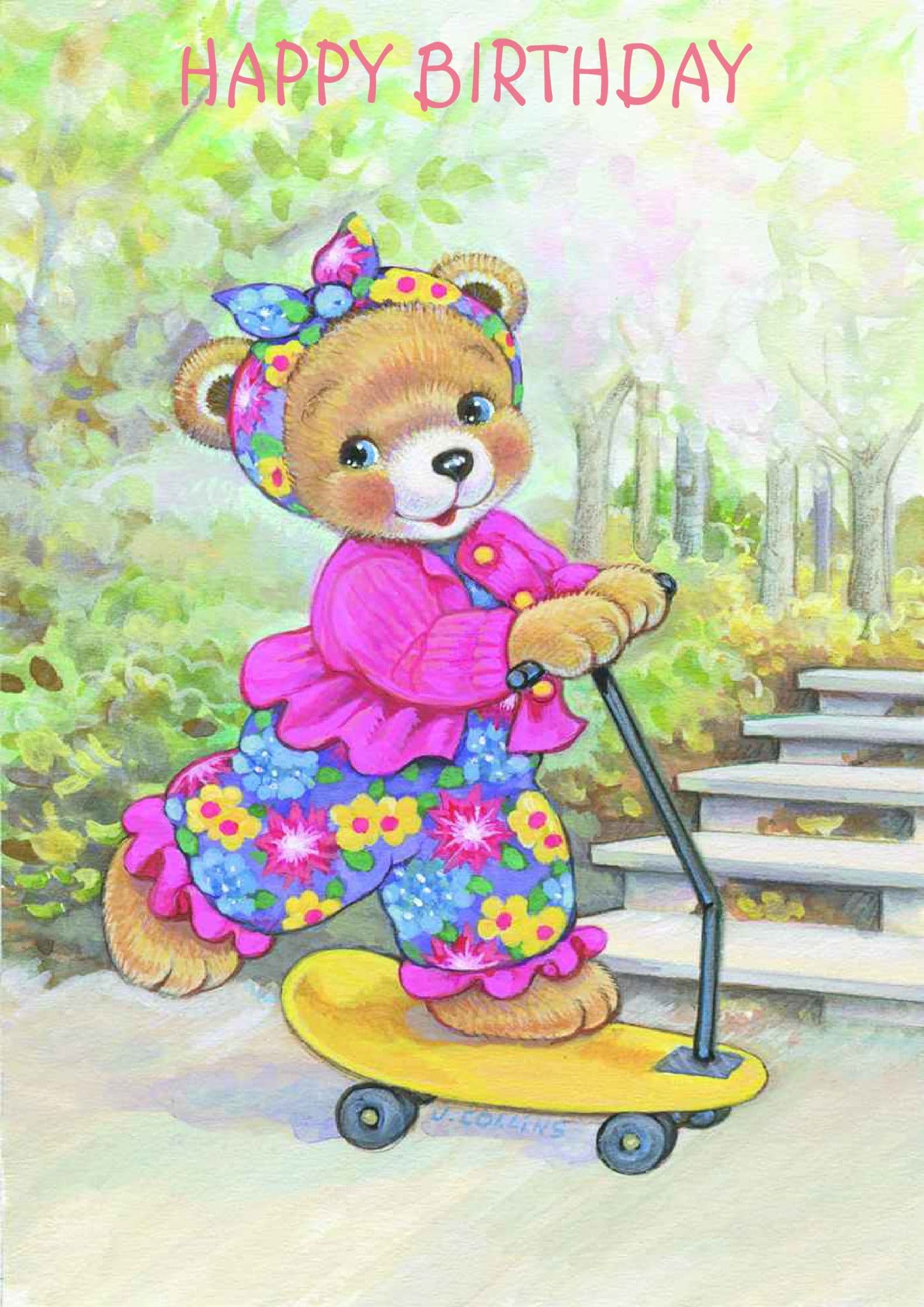 The message on the front of the card says "Happy Birthday" and the inside says "Happy Birthday".  You can enter a Name of your choice in the box provided so that the card reads " Happy Birthday 'Name' ".