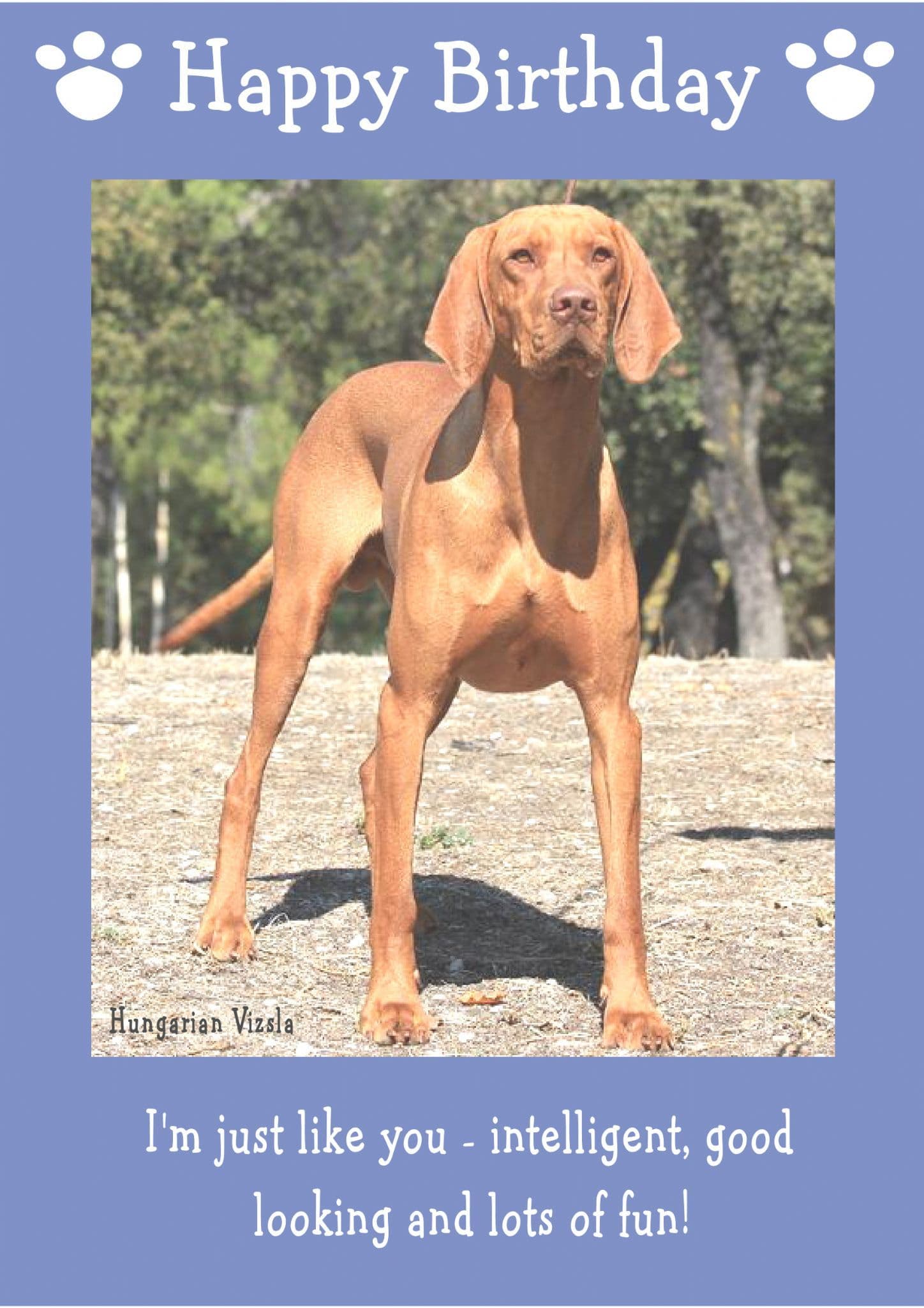 This Dog birthday card has the text "Happy Birthday" "I'm just like you - intelligent, good looking and lots of fun!" on the front of the card and the message on the inside of the card says "Happy Birthday".