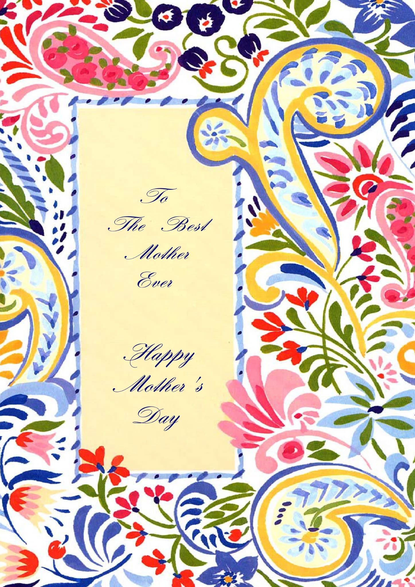 The message on the front of this Mother's Day card says "To The Best Mother Ever" "Happy Mother's Day" and the inside of the card says "Happy Mother's Day".
