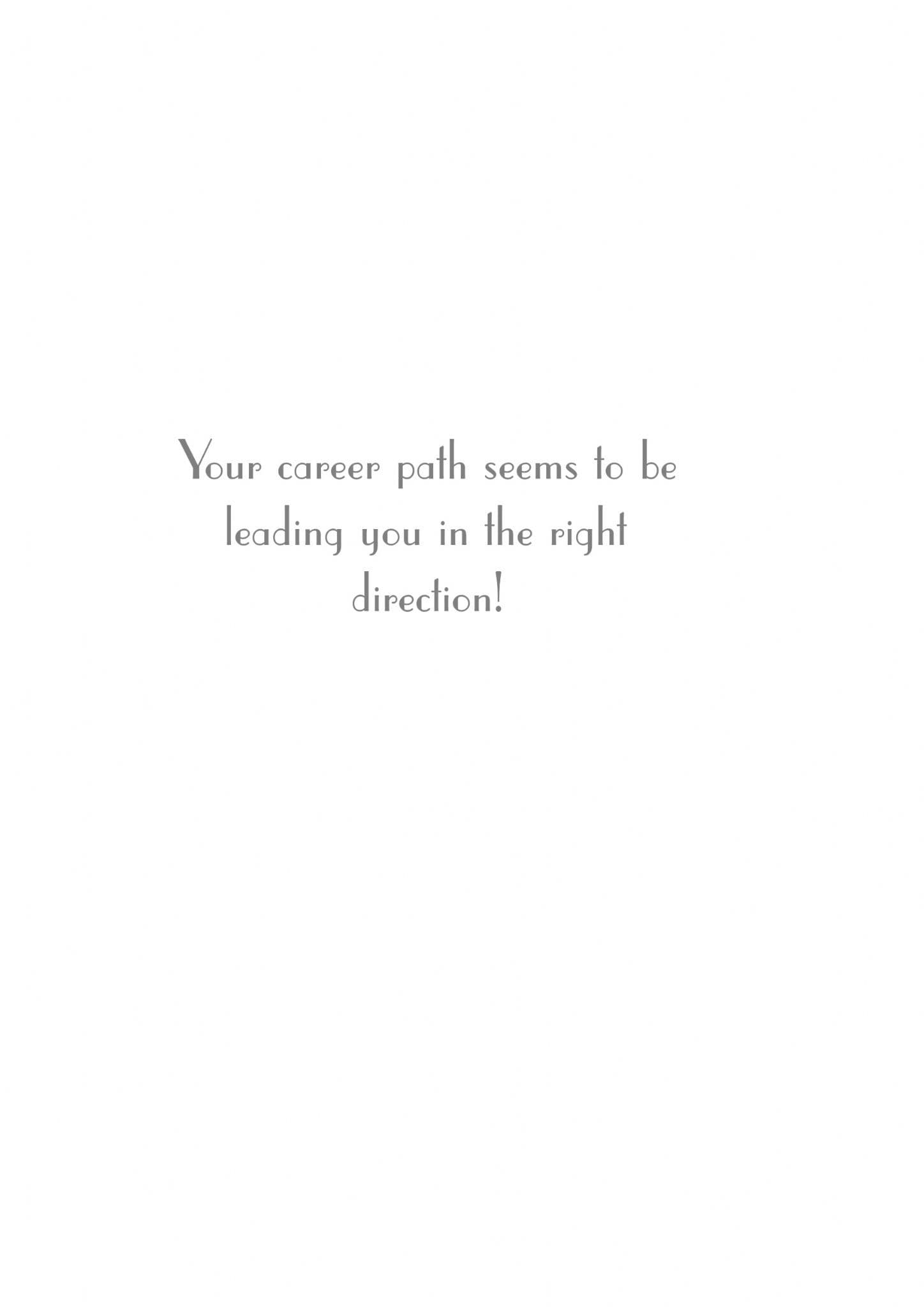 The message on the front of the card says "Good Luck With Your New Job!" and the inside of the card says "Your career path seems to be leading you in the right direction!"