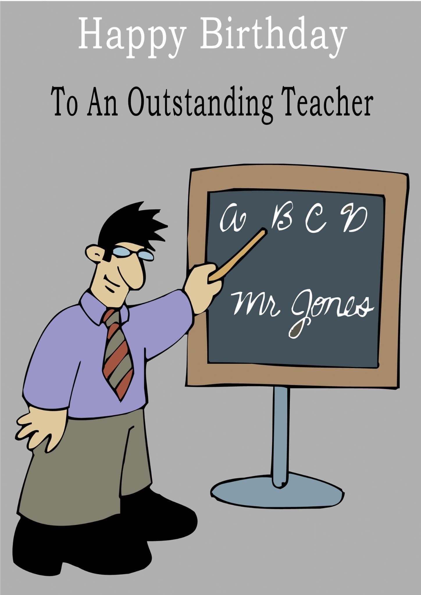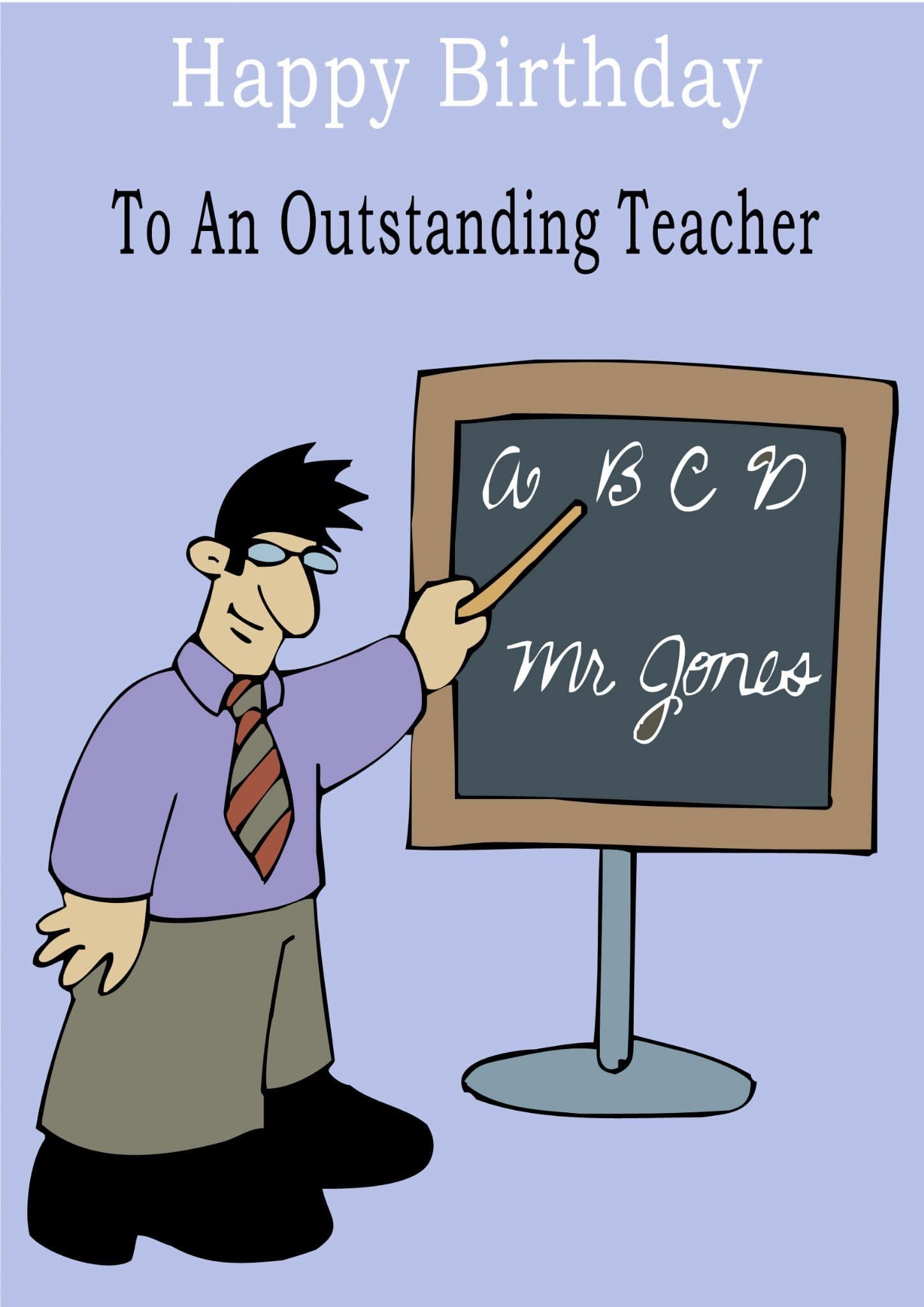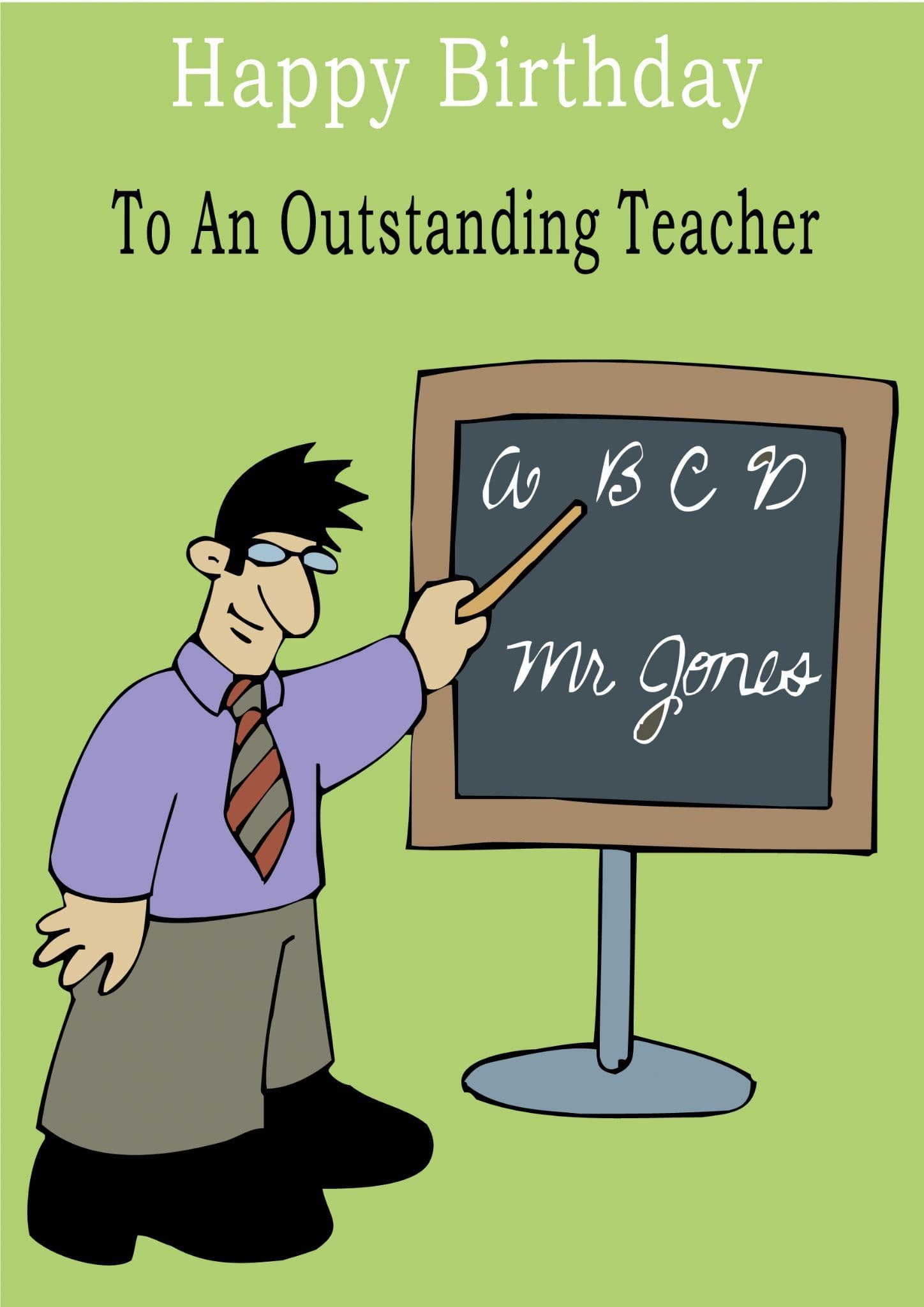 This "Occupation" birthday card has the text "Happy Birthday" "To An Outstanding Teacher" on the front of the card and the message on the inside of the card says "Happy Birthday".