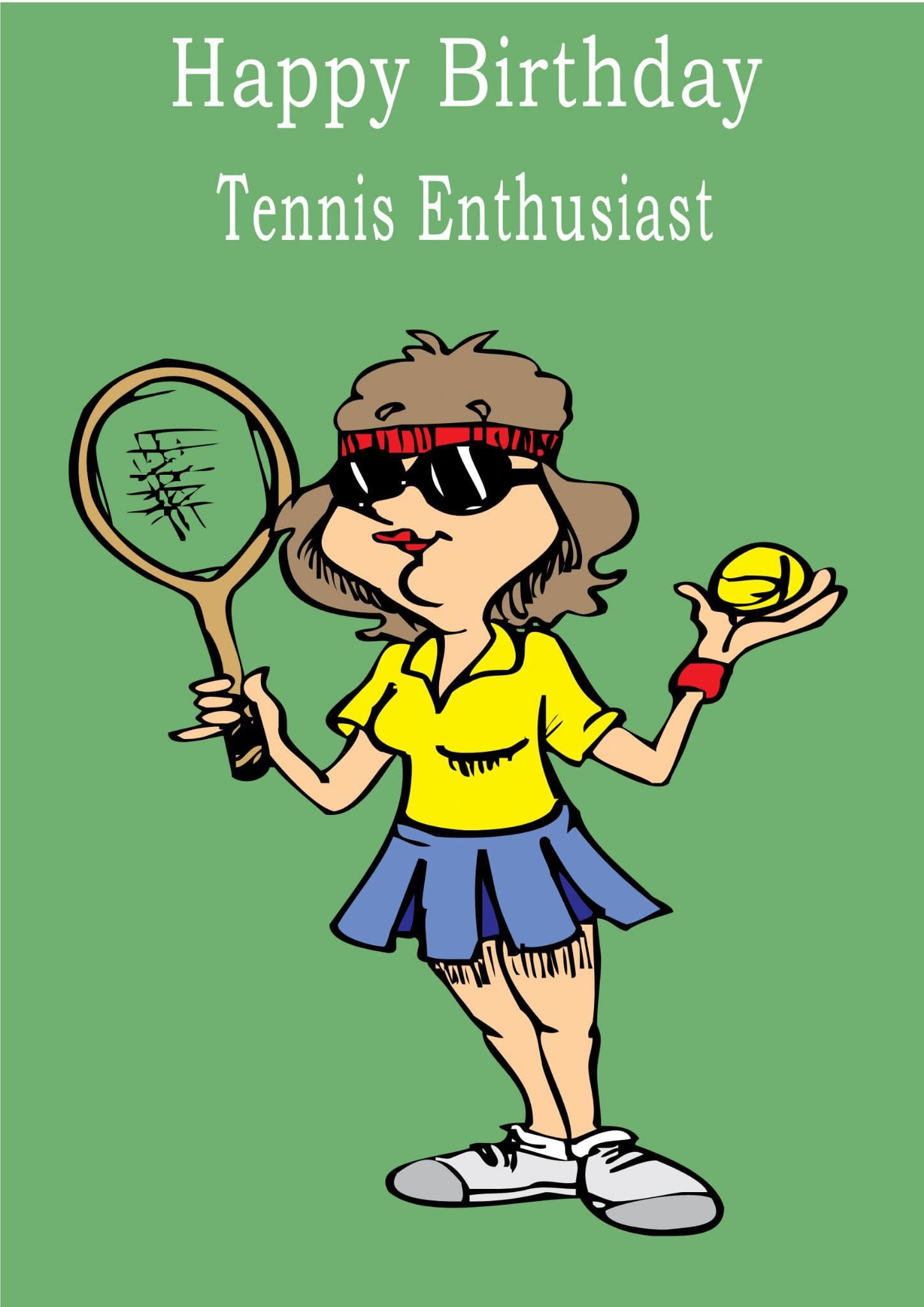 This Tennis sport card has the text "Happy Birthday", "Tennis Enthusiast" on the front. The birthday card can also be personalised with a name by entering their name in the box provided above.