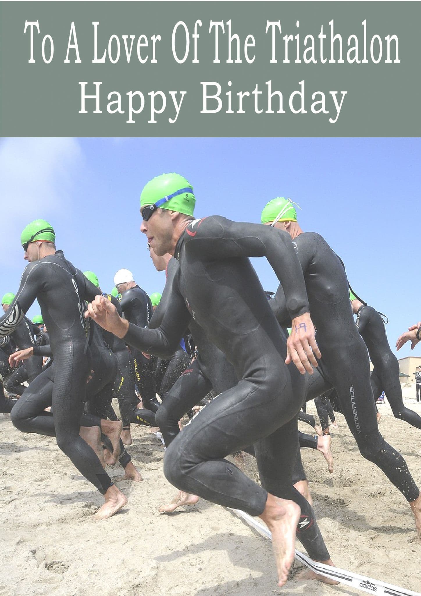 This Triathalon sport card has the text "To A Lover Of The Triathalon", "Happy Birthday" on the front. The birthday card can also be personalised with a name by entering their name in the box provided above.