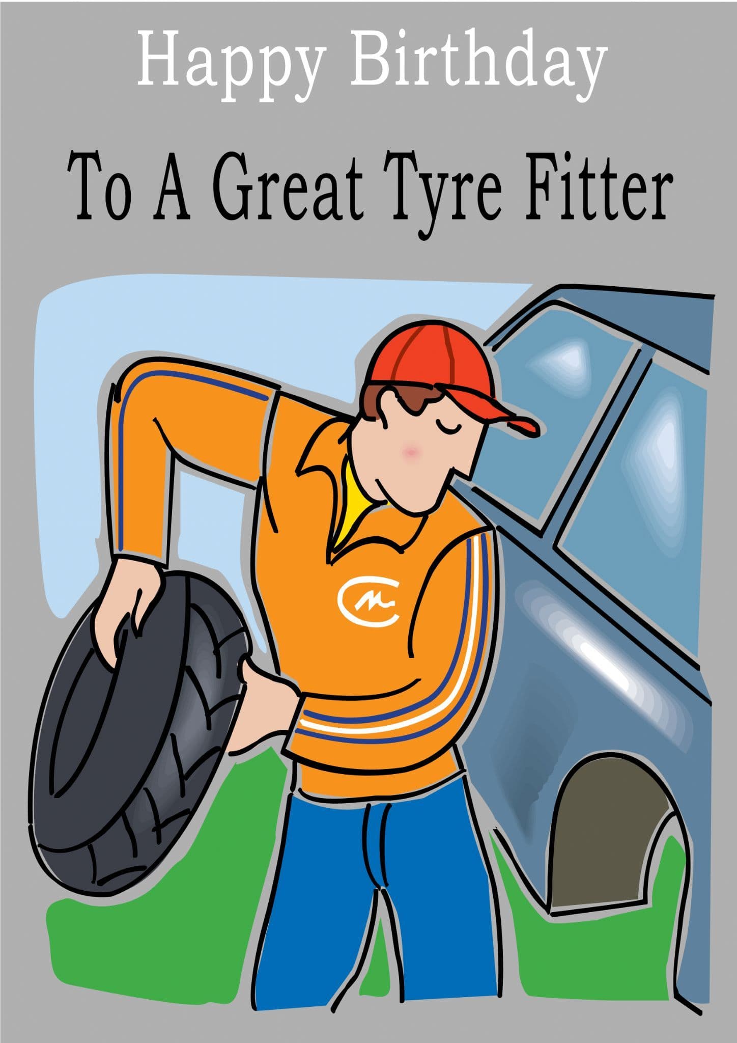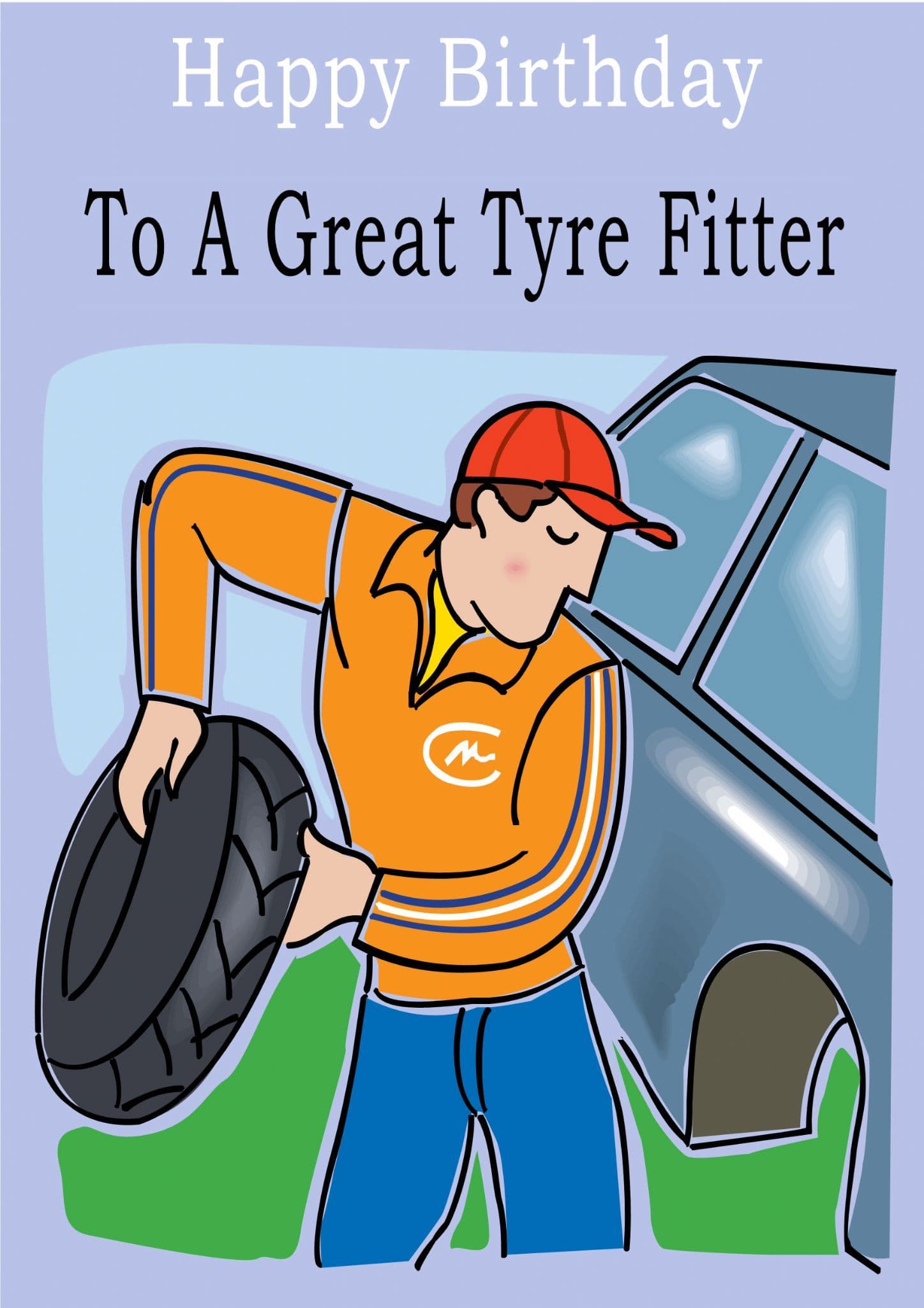 This "Occupation" birthday card has the text "Happy Birthday" "To A Great Tyre Fitter" on the front of the card and the message on the inside of the card says "Happy Birthday".