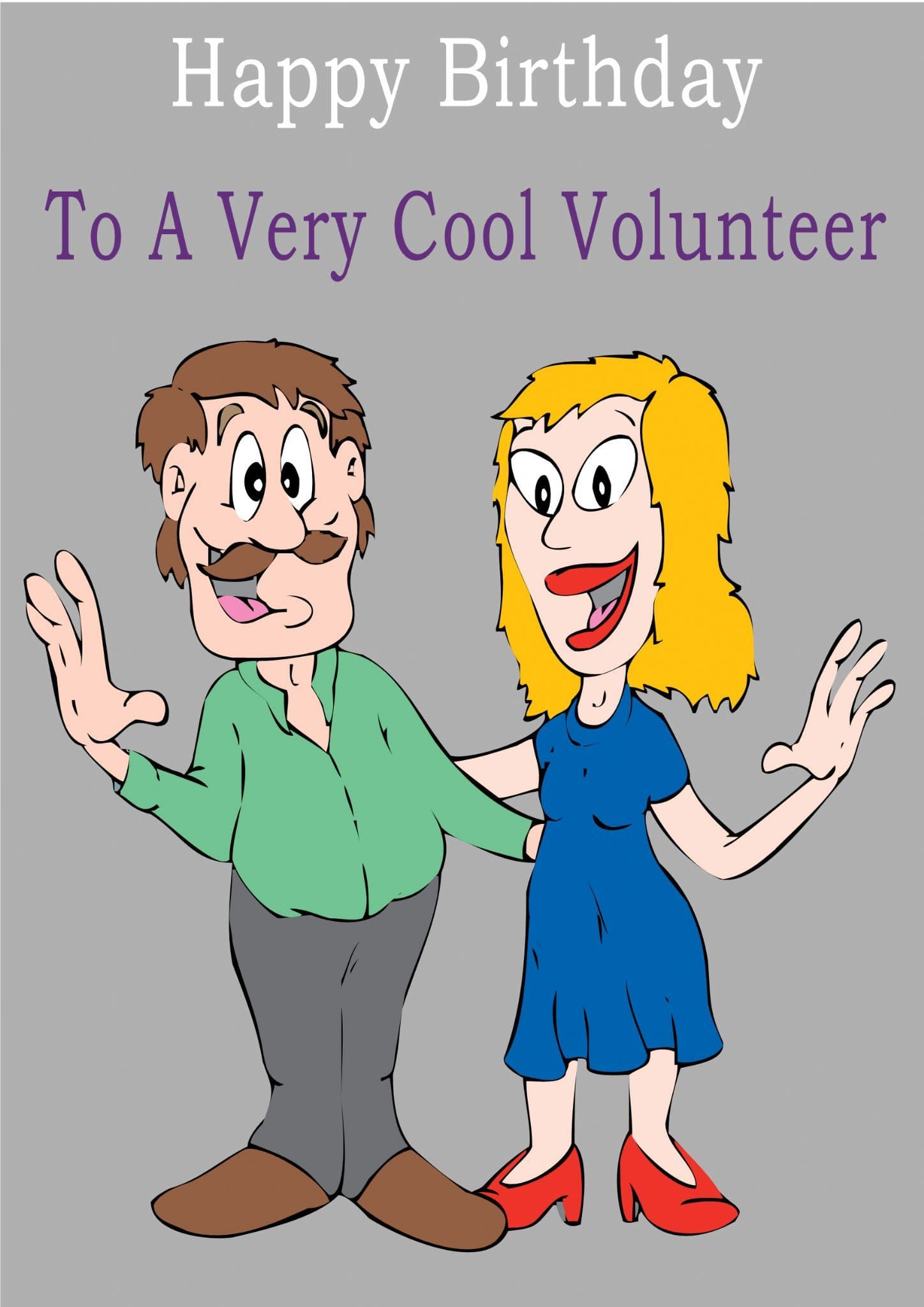 This "Occupation" birthday card has the text "Happy Birthday" "To A Very Cool Volunteer" on the front of the card and the message on the inside of the card says "Happy Birthday".